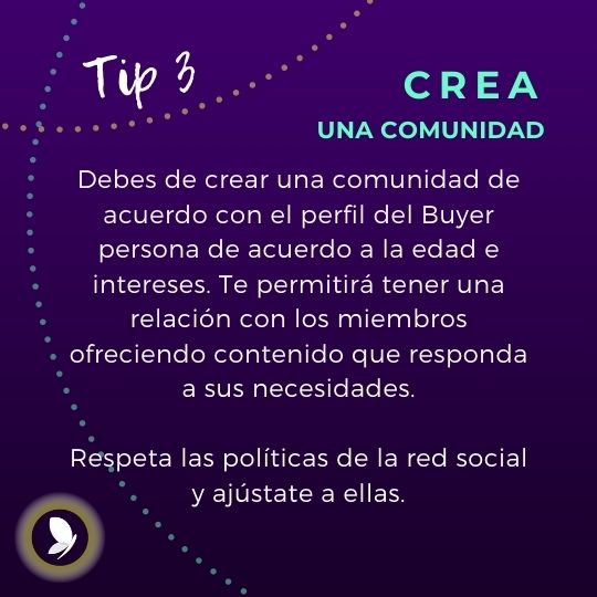 Debes de crear una comunidad de acuerdo con el perfil del Buyer persona de acuerdo a la edad e intereses. Te permitirá tener una relación con los miembros ofreciendo contenido que responda a sus necesidades.