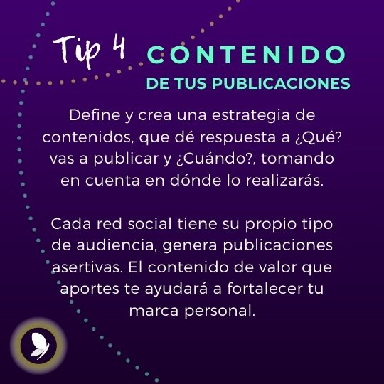 Cada red social tiene su propio tipo de audiencia, genera publicaciones asertivas. El contenido de valor que aportes te ayudará a fortalecer tu marca personal.